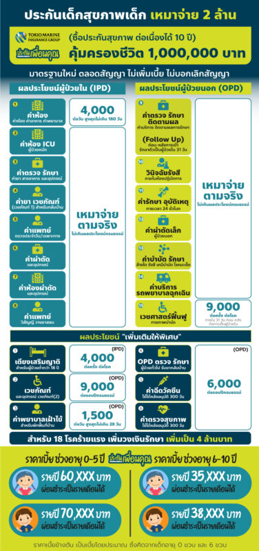 ประกันสุขภาพเด็ก โตเกียวมารีน ดูแลลูกน้อยที่คุณรัก